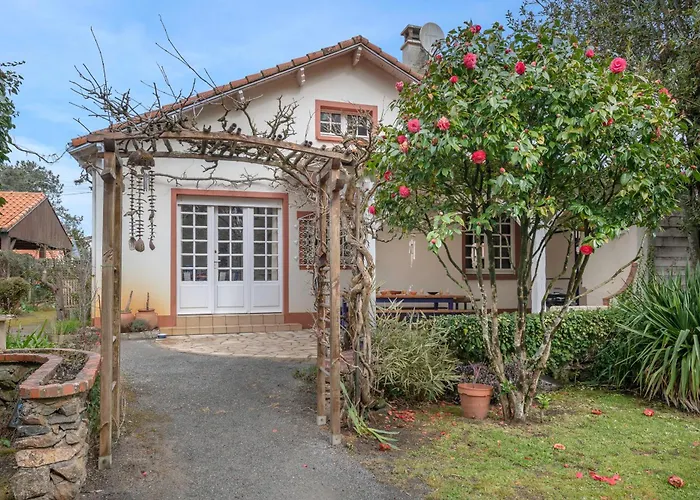 1の寝室のMaison Pour 8 A Saint Brevin Les Pinsは,Le Serpent d'Océanから徒歩10分以下です. 庭園景色を望む客室には,電気ポット,冷蔵庫 とオ-ブンがあり,テラスもあります.